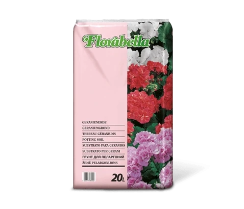 Florabella substrat za balkonske rastline z visoko vsebnostjo gline in maksimalnim zadrževanjem vode. Priporočamo ga za pelargonije, fuksije in ostale cvetoče rastline na balkonih, okenskih policah in terasah.