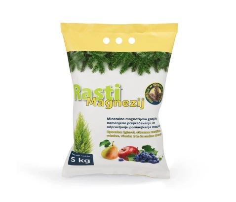 Rasti Magnezij je vodotopno gnojilo z magnezijem in žveplom. Namenjeno je preprečevanju in odpravljanju rumenenja in odpadanja iglic ter listov. Posebej učinkovito za iglavce, okrasne rastline in sadne vrste. Primerno tudi za obnovo rastlin, poškodovanih zaradi soljenja cest. Uporablja se za zalivanje, raztros ali škropljenje. Zagotavlja zdravo in zeleno rast rastlin skozi celo leto.