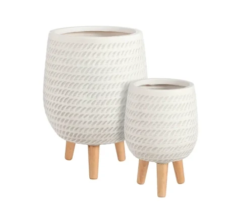 Okrasni lonec Corda na lesenih nogah bele barve.