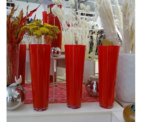 Lepa steklena vaza v rdeči barvi navdihuje s svojim brezčasnim dizajnom in vsestranskostjo. Uporabite jo lahko zgolj za dekoracijo, pa tudi kot cvetlične lonce za vaše rastline in kot samo vazo za šopke. Ne glede na to, kaj izberete, eno je gotovo: z živahno barvo in sijočim videzom bo popestrila prav vsak prostor.
