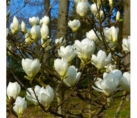MAGNOLIJA z velikimi belimi cvetovi, dišijo po limoni. Čas cvetenja je marec. Cvetovi so enostavni, tulipanasti. Je manjše pokončno drevo, v dese...