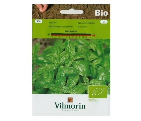 Bio Genovese bazilika ima velike izredno aromatične lističe. Je zelo občutljiva na nizke temperature. Lahko jo sejemo tudi v lonce. Dobro se ujema s paradižnikom in kumarami. Setev in uporaba skozi vse leto.