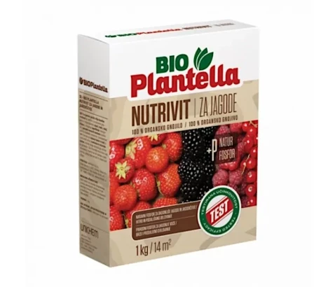 Slovensko gnojilo Bio Plantella Nutrivit za jagode in jagodičevje bogati strukturo in aktivnost tal, povečuje delež organske snovi ter enakomerno prehranjuje rastline, s čimer zagotavlja zdravo rast in razvoj ter vitaminsko bogate, naravno pridelane jagode. Zaradi oblike granul, ki se raztopijo ob stiku z zemljo in vodo, zagotavlja dolgotrajno dostopnost in hitro sproščanje hranil, zato je primeren tako za začetno gnojenje kot tudi dognojevanje rastlin v rastni dobi. Gnojilo ima dolgotrajni učinek, ki omogoča razumno gnojenje, preprečuje spiranje v podtalnico in nevarnost vžigov.