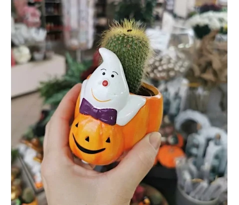 Različni kaktusi v manjših dekorativnih halloween lončkih so zanimiva jesenska namizna dekoracija. Lahko pa jih podarimo tudi otrokom, ki so ljubitelji noči čarovnic ter kaktusov hkrati.