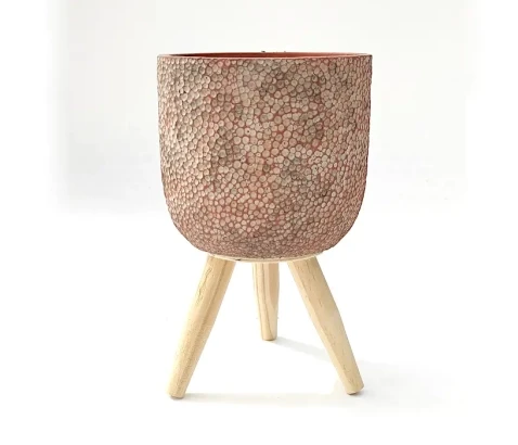 Okrasni lonec Lexy z lesenimi nogami za okrasne sobne lončnice. Mere: 22,5x14cm