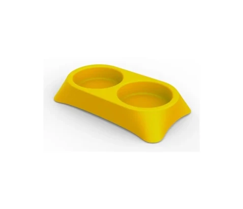 Dvojna posodica Stella je izdelana iz kakovostne PVC plastike v rumeni barvi, njena prostornina je 2 × 0,6 L. Primerna je za hrano in vodo in namenjena vsem malim hišnim ljubljenčkom.