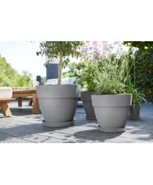 Želite ozeleniti svoj balkon? Viseči lonec vibia campana je kot nalašč za vas. Ti balkonski lonci so primerni za skoraj vsak balkon, saj se prilegajo ograjam do širine 6,5 cm. Odtožna cev vam omogoča, da dlje časa uživate v zelenju, saj odvečna voda enostavno odteče. Ljubezen do narave odraža v načinu izdelave tega lonca: izdelan je iz reciklirane plastike, proizvedene z vetrno energijo, poleg tega pa ga je mogoče v celoti reciklirati.