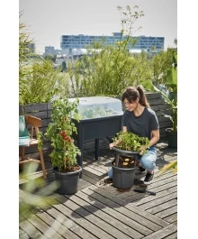 Iz 100 % recikliranih plastičnih mas, odporna proti UV-sevanju in zmrzali. Antracit barva se lepo ujema z ostalimi posodami in opremo Florus linije.