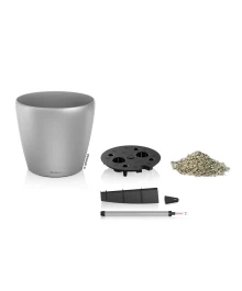 Komplet vsebuje lonec z vgrajenim sistemom vodne rezerve Lechuza in substrat z gnojilom Lechuza Pon.Sistem vodne rezerve Lechuza je pametno zasnovan namakalni sistem, ki zagotavlja optimalno oskrbo rastlin z vodo ter posnema njihove naravne razmere. Za vzpostavitev sistema najprej nasujte zračen substrat Lechuza Pon na dvojno dno vložne posode. Substrat zagotavlja optimalno razmerje med zrakom in vodo, oskrbuje rastline z najpomembnejšimi hranili ter preprečuje zastajanje vode. Vsebuje zadostno količino gnojila za do 6 mesecev.