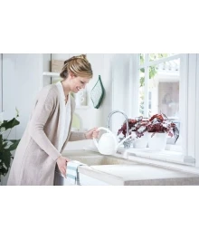 Sistem vodne rezerve Lechuza je pametno zasnovan namakalni sistem, ki zagotavlja optimalno oskrbo rastlin z vodo ter posnema njihove naravne razmere. Za vzpostavitev sistema najprej nasujte zračen substrat Lechuza Pon na dvojno dno vložne posode. Substrat zagotavlja optimalno razmerje med zrakom in vodo, oskrbuje rastline z najpomembnejšimi hranili ter preprečuje zastajanje vode. Vsebuje zadostno količino gnojila za do 6 mesecev.
