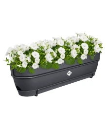 Moderna skleda rozeta iz umetne mase v srebrni barvi. Naj vaše zasajene rastline dobijo poseben čar.Skleda ima vodno rezervo za 2 l vode.