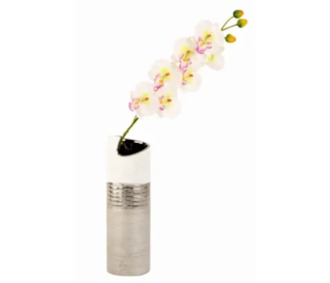 Moderna okrogla vaza v srebrno - beli kombinaciji popestri prav vsak prostor kamor jo postavimo.