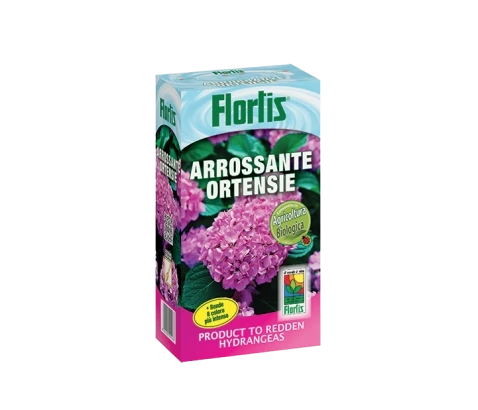 Flortis specifično barvilo za nanašanje na škrlatne, roza in rdeče hortenzije. Prisotnost keliranega železa omogoča reševanje težav s klorozo. Uporaba pripravka na tleh ohranja pH znotraj vmesnih vrednosti (zahvaljujoč učinku dodanega kalcija), kar ustvarja idealno okolje za intenziviranje barve.