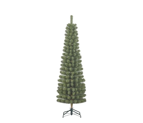 Ta ozka, lepo oblikovana umetna smrečica izstopa z enakomerno razporejenimi, gostimi zelenimi vejicami, ki ustvarjajo urejen in naraven videz. Zaradi vitke oblike je idealna za manjše prostore, hodnike, vhode ali kotičke, kjer želiš praznično okrasitev brez zavzemanja preveč prostora. Stabilno stoji na kovinskem stojalu, enostavna je za postavitev in dobro ohranja svojo obliko. Odlična izbira za dom ali pisarno, kjer želiš hitro in brezskrbno pričarati praznično vzdušje.