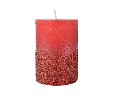 Sveča z bleščicami, rdeča Dimenzije: 7 x 10 cm