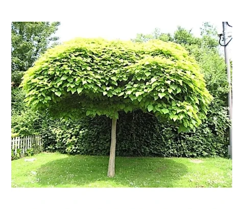 Je manjše drevo z okroglasto krošnjo, brez obrezovanja. Višina drevesa je odvisna od cepljenega mesta. Listi so veliki, srčasti in se dobro prekrivajo, zato krošnja nudi lepo senco. Dobro uspeva v zavetnih legah, na sončni ali polsenčni strani, tla morajo biti vlažna vendar propustna in bogata s hranili.