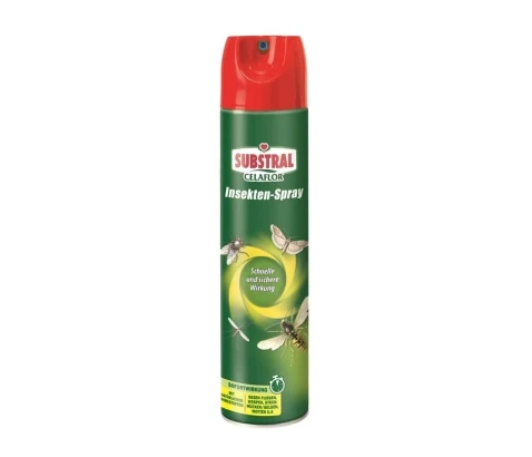 Celaflor univerzalni insekticid proti mrčesu je učinkovit sprej, ki hitro in učinkovito zatira različne vrste mrčesa, vključno z muhami, mušicami, molji, osami, komarji, mravljami in srebrnimi ribicami. Vsebuje naravno učinkovino iz cvetov dalmatinskega bolhača, kar zagotavlja varno uporabo v stanovanjskih prostorih, hotelih, vikendih, trgovinah ter kmetijskih in industrijskih poslopjih. Uporaba je enostavna in priročna: pred uporabo izdelek dobro pretresite in mrčes popršite z razdalje približno 10 cm za 1-2 sekundi. Takojšnji knock down učinek je opazen pri komarjih, moljih in srebrnih ribicah, medtem ko na mravlje učinkuje v nekaj sekundah, na muhe in mušice pa v pol minute. Razpršilec deluje tudi obrnjeno navzdol, kar omogoča dosego težko dostopnih mest. Pri uporabi insekticida v zapritih prostorih škropite največ 10 sekund za prostor velikosti 60 m3 in nato ga po 30 minutah dobro prezračite. Priporočamo, da pršite samo po potrebi in raje direktno na mrčes. Površine, ki prihajajo v stik s hrano, pred ponovno uporabo temeljito očistite. Sprej najprej preizkusite na skritem mestu, če ga uporabljate na občutljivih površinah.