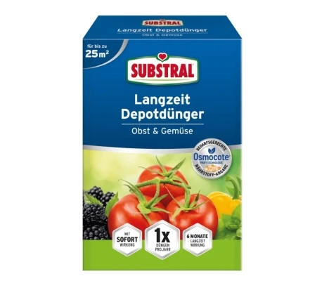 Substral dolgotrajno gnojilo Osmocote je vrhunska izbira za vse, ki želijo optimalno oskrbo svojih rastlin. Primerno je za širok spekter zelenjadnic, kot so paradižnik, bučke, paprika, čili in kumare, pa tudi za jagode, jagodičevje in sadno drevje. S pomočjo »inteligentne tehnologije« gnojilo zagotavlja sproščanje hranil v skladu s potrebami rastlin, kar omogoča enostavno enkratno letno aplikacijo. Zagotovite takojšen in dolgotrajen učinek s preizkušeno formulo. Neoplaščena zrnca začnejo sproščati hranila takoj po uporabi, medtem ko oplaščena zrnca zagotavljajo dolgotrajno delovanje do šest mesecev. Sestava z bogatim kalijem prispeva k bolj okusnim plodovom in odpornejšim rastlinam, saj hranila sprošča glede na vlažnost in temperaturo tal. Za enostavno uporabo pred sajenjem zmešajte gnojilo z zemljo ali ga dodajte v sadilno jamo. Po sajenju rastlinam omogočite temeljito zalivanje, prav tako pa poskrbite za gnojenje območja korenin z občasnim dodajanjem gnojila. Priporočamo uporabo priloženega pripomočka za odmerjanje, da zagotovo dobite pravo količino za vaše rastline.