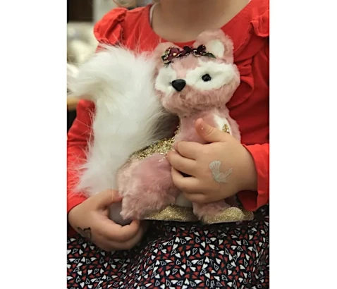 Mehka ljubka lisička v roza/beli barvi - kot darilo za vaše najmlajše in mlade po srcu in krasna dekoracija vašega doma, sploh v prazničnih časih.