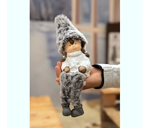 Figura otroka z klobučkom v toplih krznenih oblačilih Dimenzije: 22cm