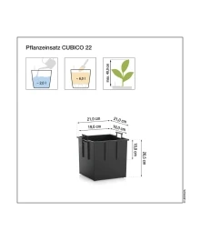 Komplet vsebuje lonec z vgrajenim sistemom vodne rezerve Lechuza in substrat z gnojilom Lechuza Pon.Sistem vodne rezerve Lechuza je pametno zasnovan namakalni sistem, ki zagotavlja optimalno oskrbo rastlin z vodo ter posnema njihove naravne razmere. Za vzpostavitev sistema najprej nasujte zračen substrat Lechuza Pon na dvojno dno vložne posode. Substrat zagotavlja optimalno razmerje med zrakom in vodo, oskrbuje rastline z najpomembnejšimi hranili ter preprečuje zastajanje vode. Vsebuje zadostno količino gnojila za do 6 mesecev.