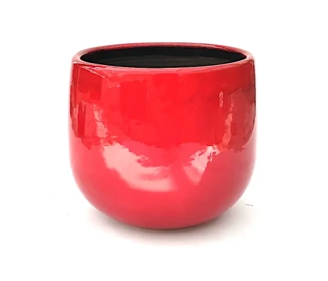 Okrasni lonec za sobne lončnice, okrogel rdeče barve.