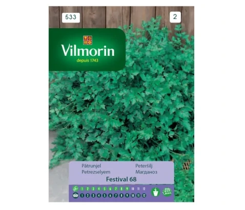 Festival 68 peteršilj ima manjše a tudi gladke liste, temno zelene barve. Prav tako ga lahko vzgajamo tudi v okrasnih loncih. Setev: januar - september Uporaba: skozi vse leto
